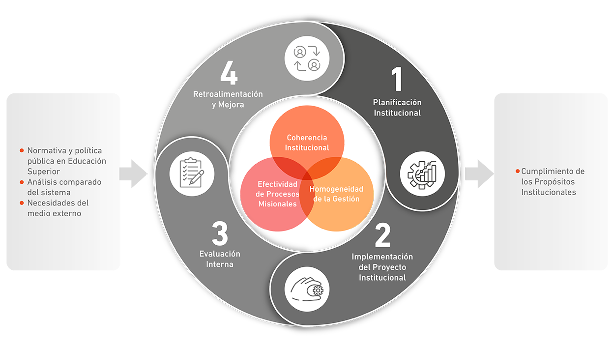 “Garantizar el mejoramiento continuo, la capacidad de autorregulación y la promoción de la cultura de la calidad a nivel institucional con el fin de asegurar calidad de manera consistente con la misión, propósitos institucionales y requerimientos establecidos en la legislación relativa a la Educación Superior”.