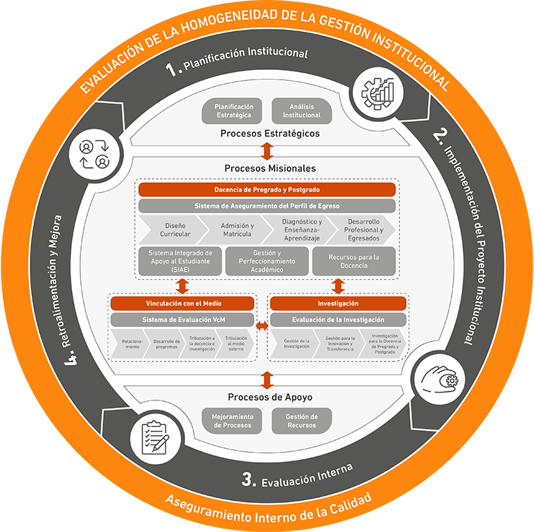 - Implementación, actualización y mantención de mecanismos internos de aseguramiento de la calidad.